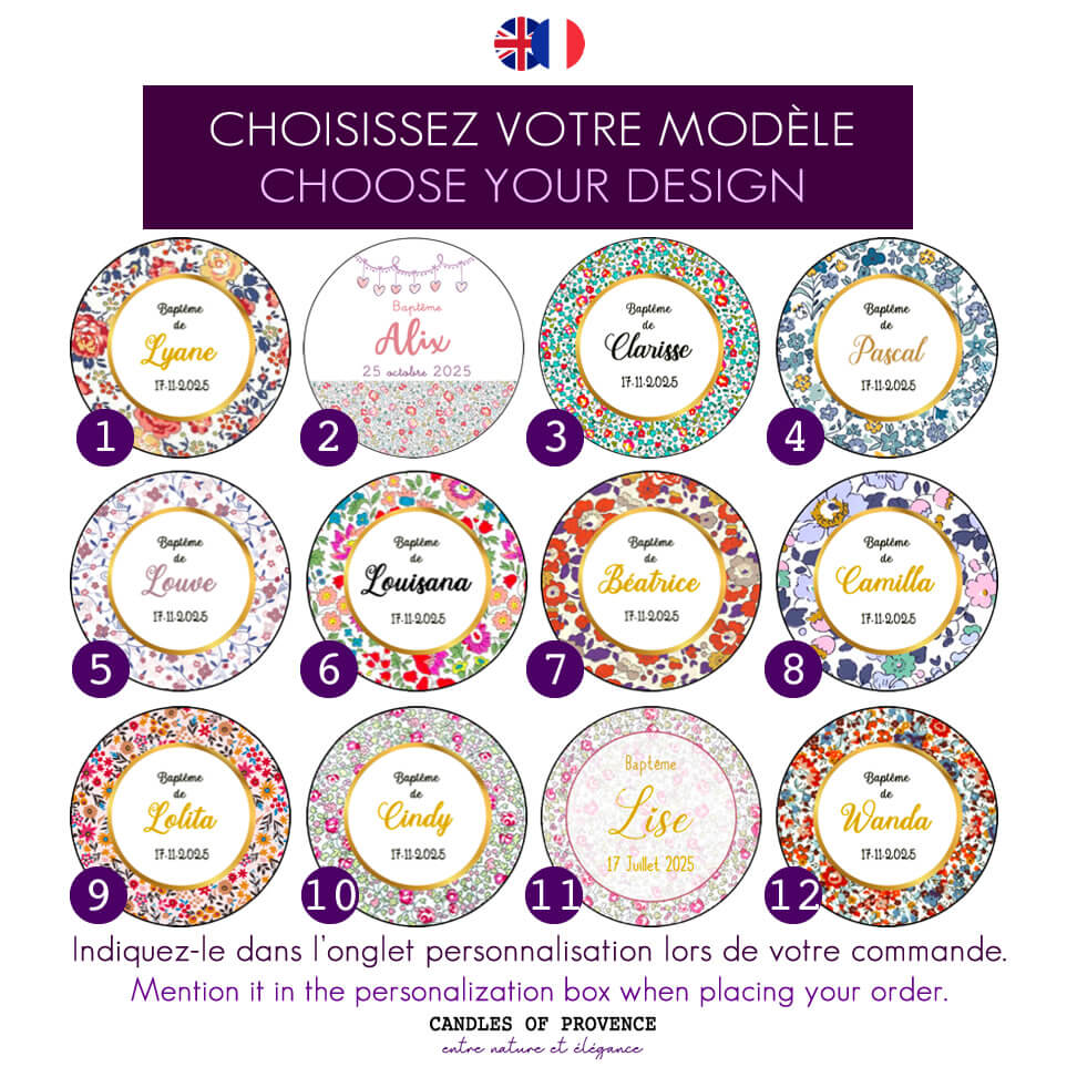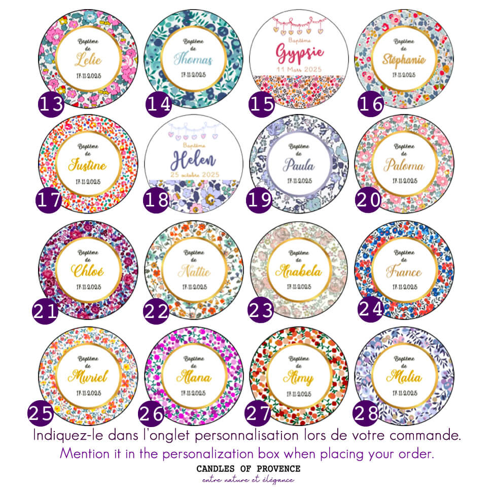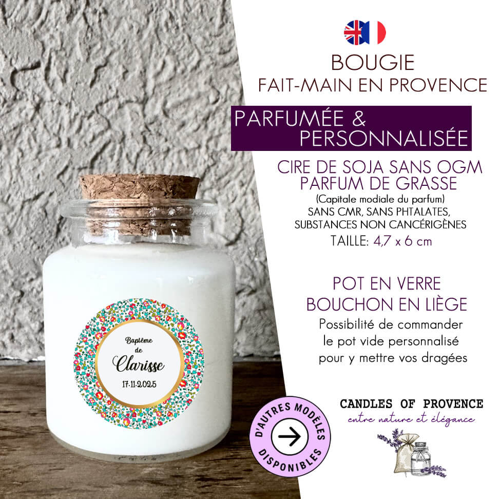 Bougie baptême personnalisée – Motif Liberty coloré