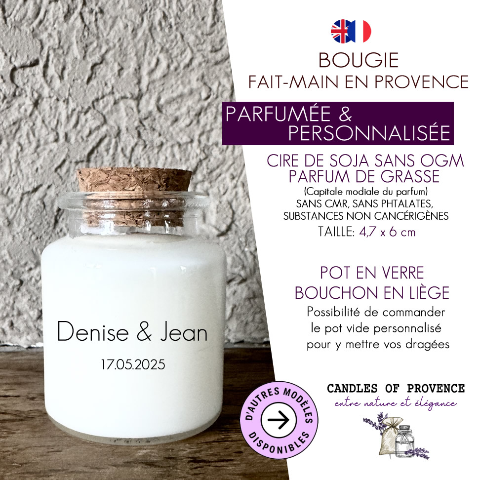 Bougie parfumée personnalisée – Cadeau invités mariage moderne