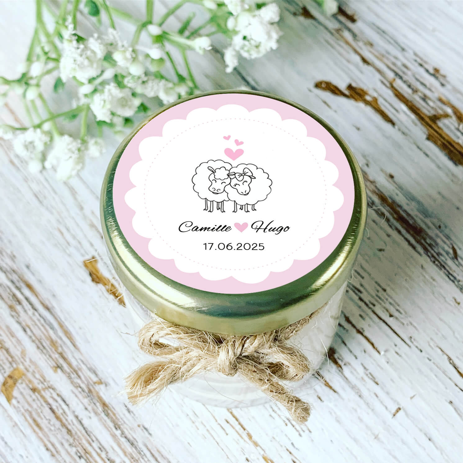 Bougie personnalisée mariage moutons amoureux – Cadeau invité…