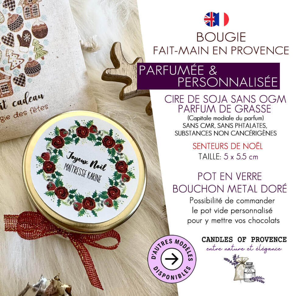 Cette bougie de Noël personnalisée est parfaite pour une maîtresse, une nounou, une ATSEM, un collègue, un ami ou pour un échange Secret Santa. Elle convient aussi pour offrir à la famille ou pour célébrer le Nouvel An. Une idée de cadeau original !