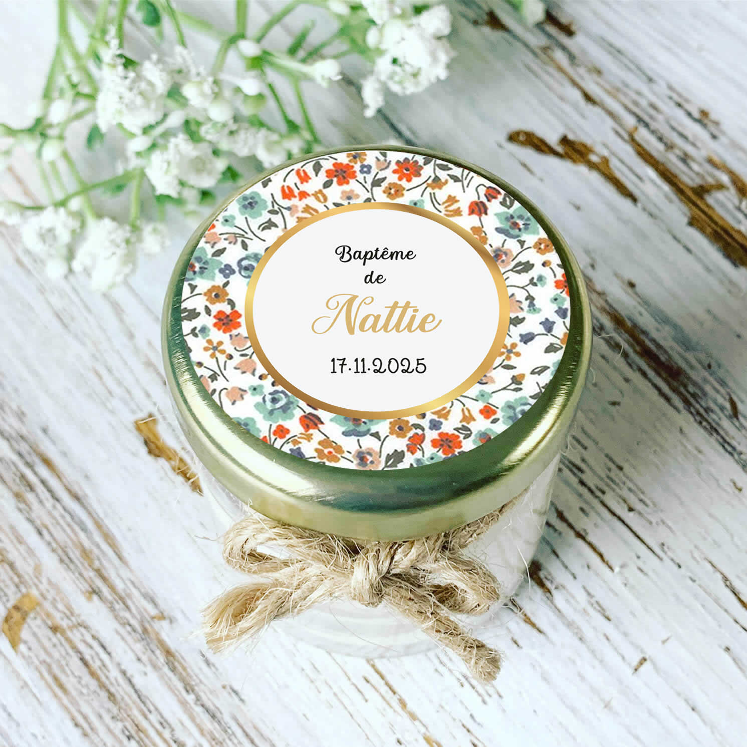 Bougie baptême motif Liberty pastel personnalisée – cadeau invités …
