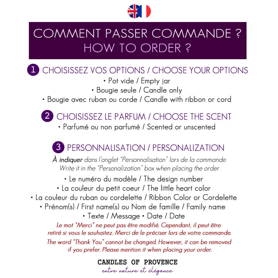 Offrez à vos invités un souvenir élégant et authentique. Chaque bougie est fabriquée à la main en France à partir de cire de soja naturelle et végan.