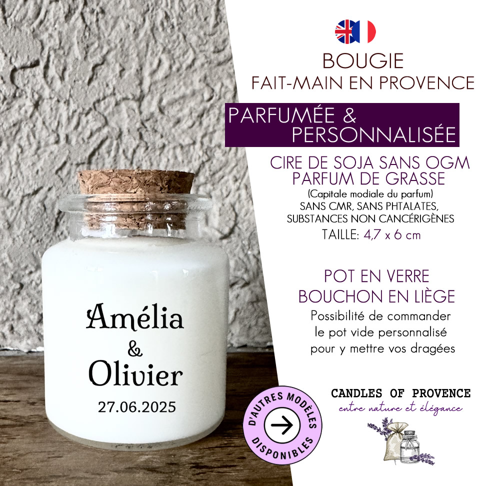 Bougie parfumée personnalisée mariage – Modèle Élégance Classique.