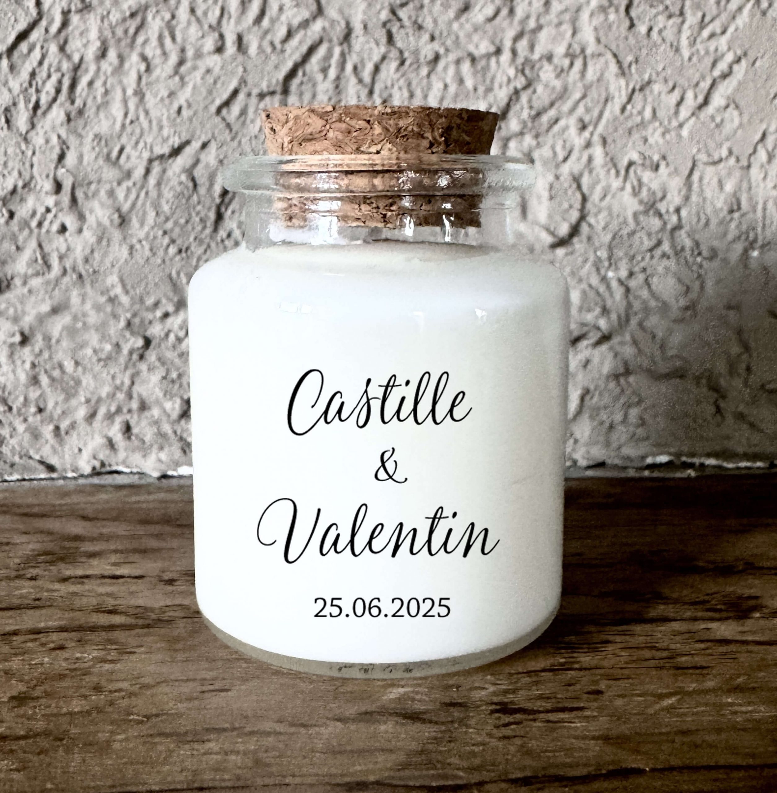 Bougie parfumée personnalisée – Cadeau invités mariage élégant