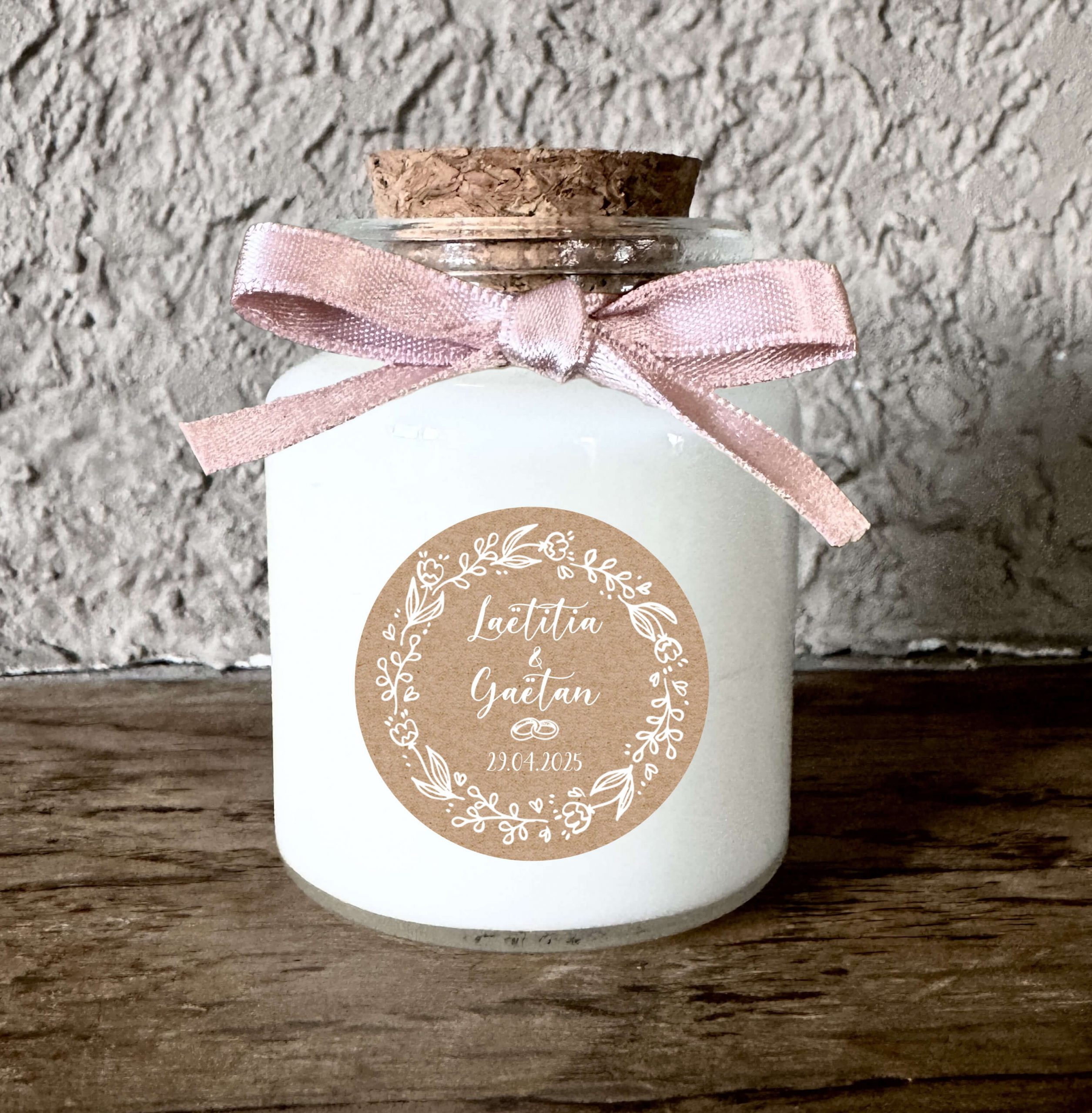 Bougie personnalisée mariage au style kraft