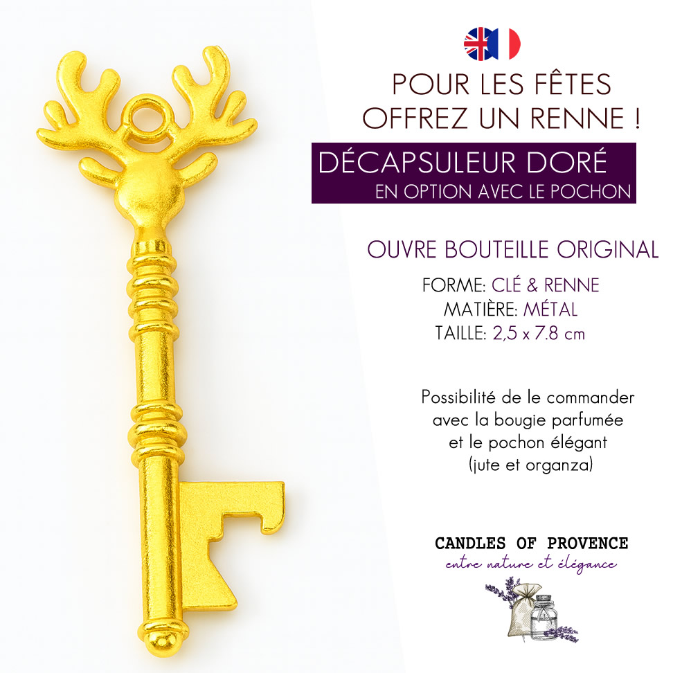 Bougie vendue à l’unité avec son pochon jute et son décapsuleur en forme de clé